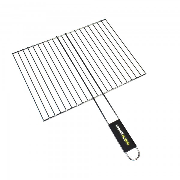Descubra los placeres de la barbacoa de carbón con esta parrilla rectangular de acero cromado. Resistente a las llamas, dispone de un mango "soft-touch" para una sujeción segura y un manejo más fácil.