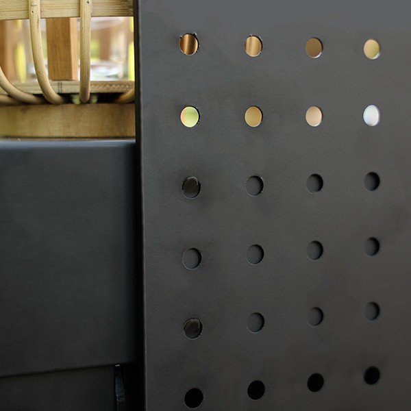 - Sistema de faldon/credenza desmontables e intercambiables para adaptar la mesa a sus necesidades.