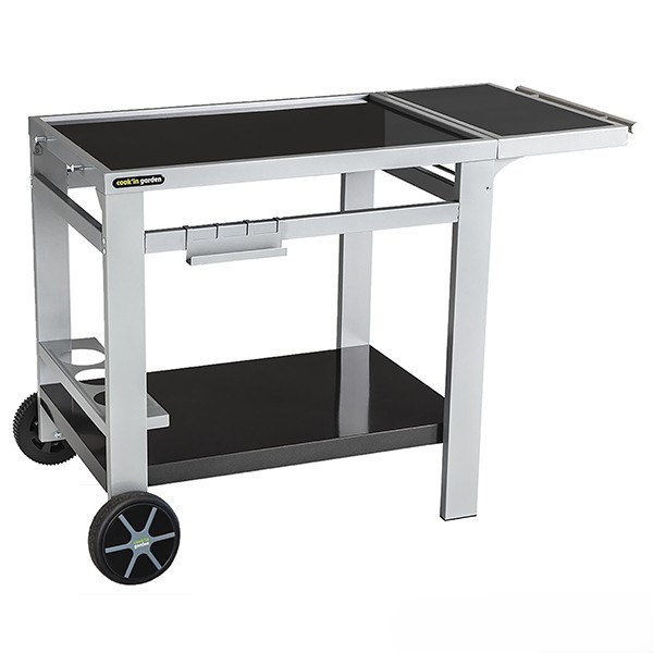 Disfrute al máximo de sus comidas de verano con el aparador MEDIA L, diseñado para alojar su plancha de asar eléctrica/gas o como mueble auxiliar. Gracias a su estante abatible, podrá ampliarlo con un solo movimiento o guardarlo fácilmente una vez utilizado. También es fácil de desplazar gracias a sus ruedas reforzadas, y es práctico gracias a sus ganchos para colgar utensilios y sus 3 portabotellas.