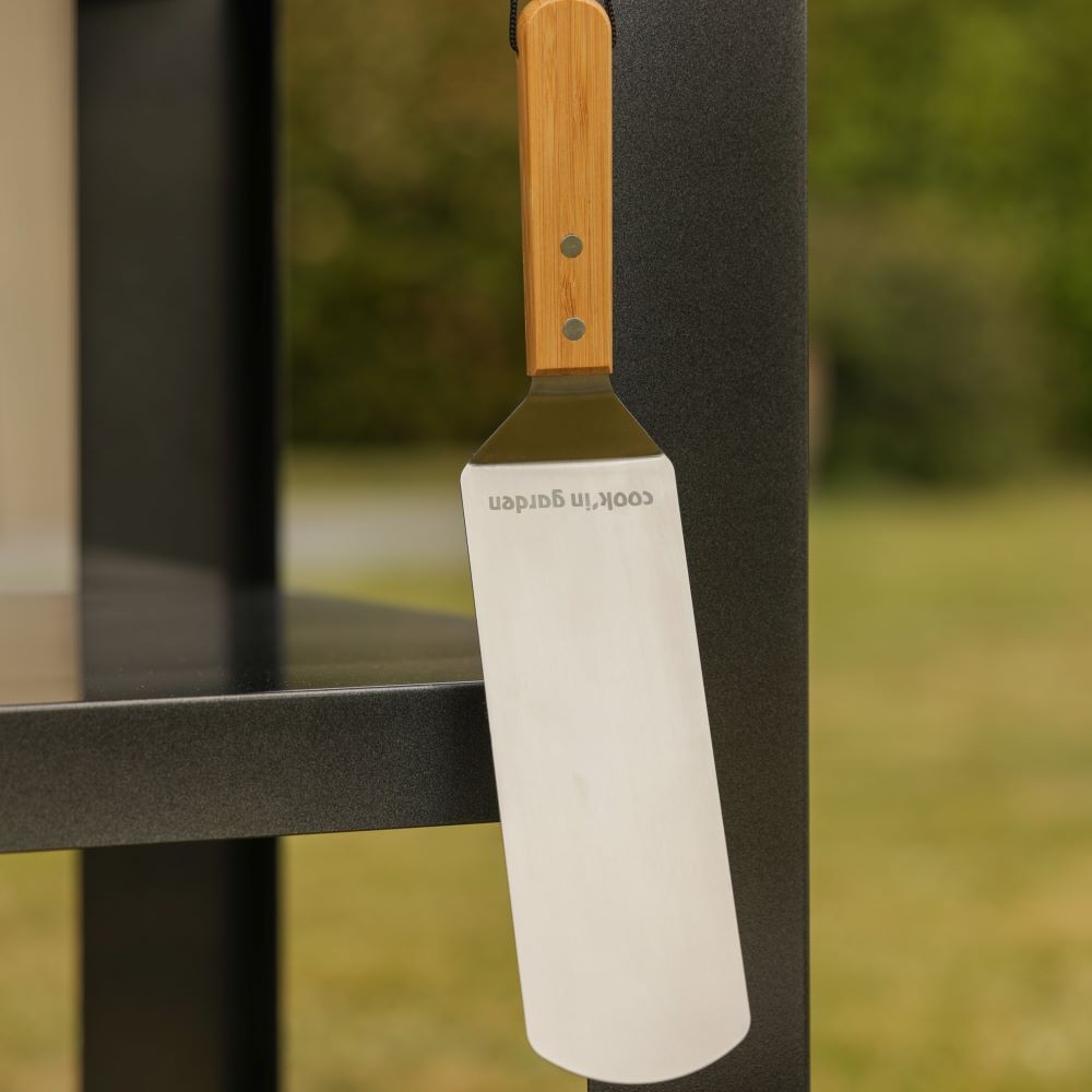 Maletín de chef para sus barbacoas. Incluye pinchos para brochetas, 1 par de pinzas, 1 tenedor, 1 espátula, 1 salero y pimentero. En acero inoxidable.