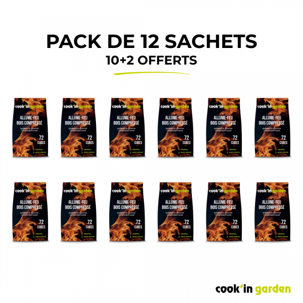 Pack de 12 - Sacs d'allume-feux (72 pcs x 12) - Bois compressé - 100% végétal - FSC® 100%