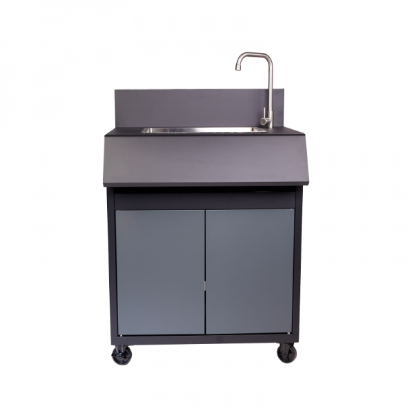 Complétez votre barbecue BURN avec l’évier assorti : une zone de rinçage pratique pour laver vos aliments, un espace de rangement fermé pour vos ustensiles, et une mobilité totale grâce à ses 4 roues verrouillables.