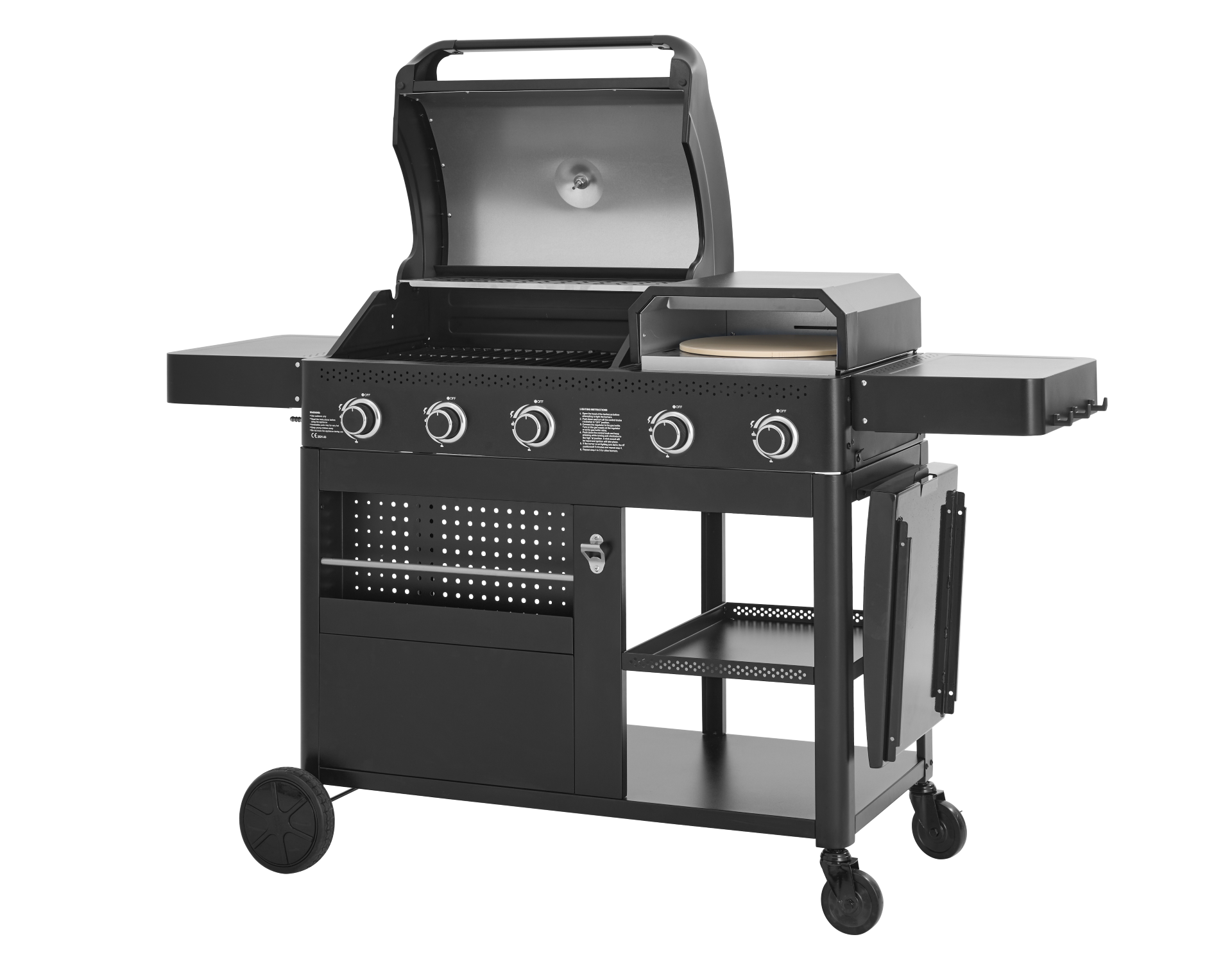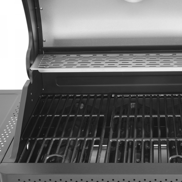 Ses 3 brûleurs principaux délivrent une puissance totale de 15 kW, répartie sur une surface barbecue de 60 x 45,5 cm et une zone plancha/four à pizza de 45 x 38 cm.