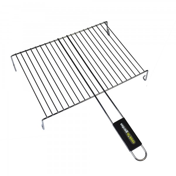 Discover the joys of charcoal barbecuing with this rectangular chromed steel grill. Flame-resistant, it has 4 feet to rest it on and a "soft-touch" handle for a secure hold and easier handling.