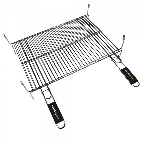 Grill with 2 double handles and feet (60x40cm). Compatible with several barbecue brands.