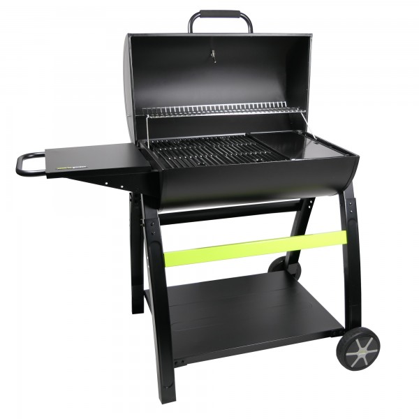 It also features a warming rack, a side shelf for preparation, a bottom shelf for storage and a bonnet with thermometer, so you can monitor and adjust the cooking temperature to perfection.