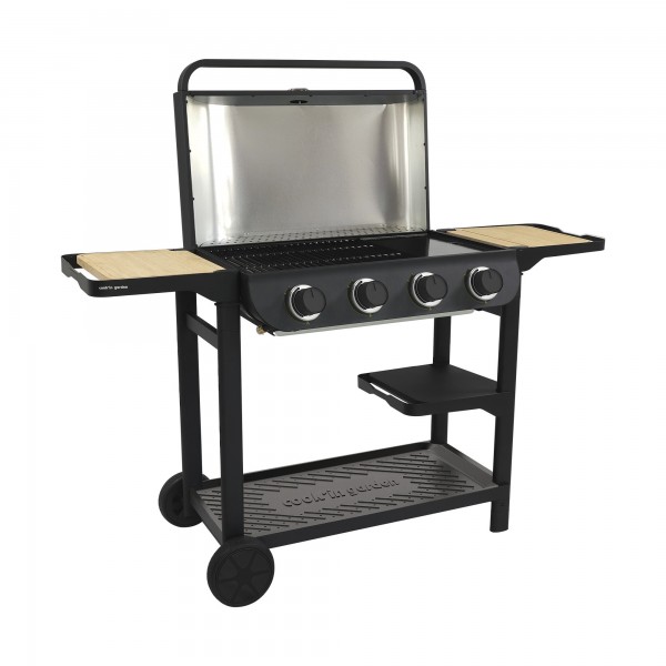 The barbecue has 3 adjustable shelves: 2 in bamboo and 1 in metal.