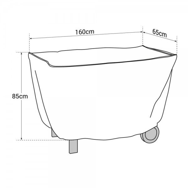 Waterafstotende, waterdichte hoes van zwart polyester. Afmetingen: L 160 x B 65 x H 85 cm.